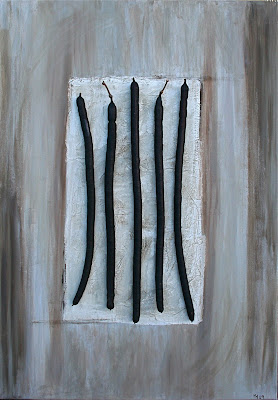 The brown poles in the middle are seed pods brought home from a trip to Guadeloupe.